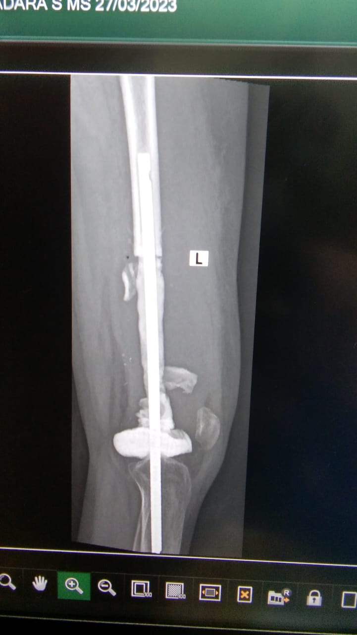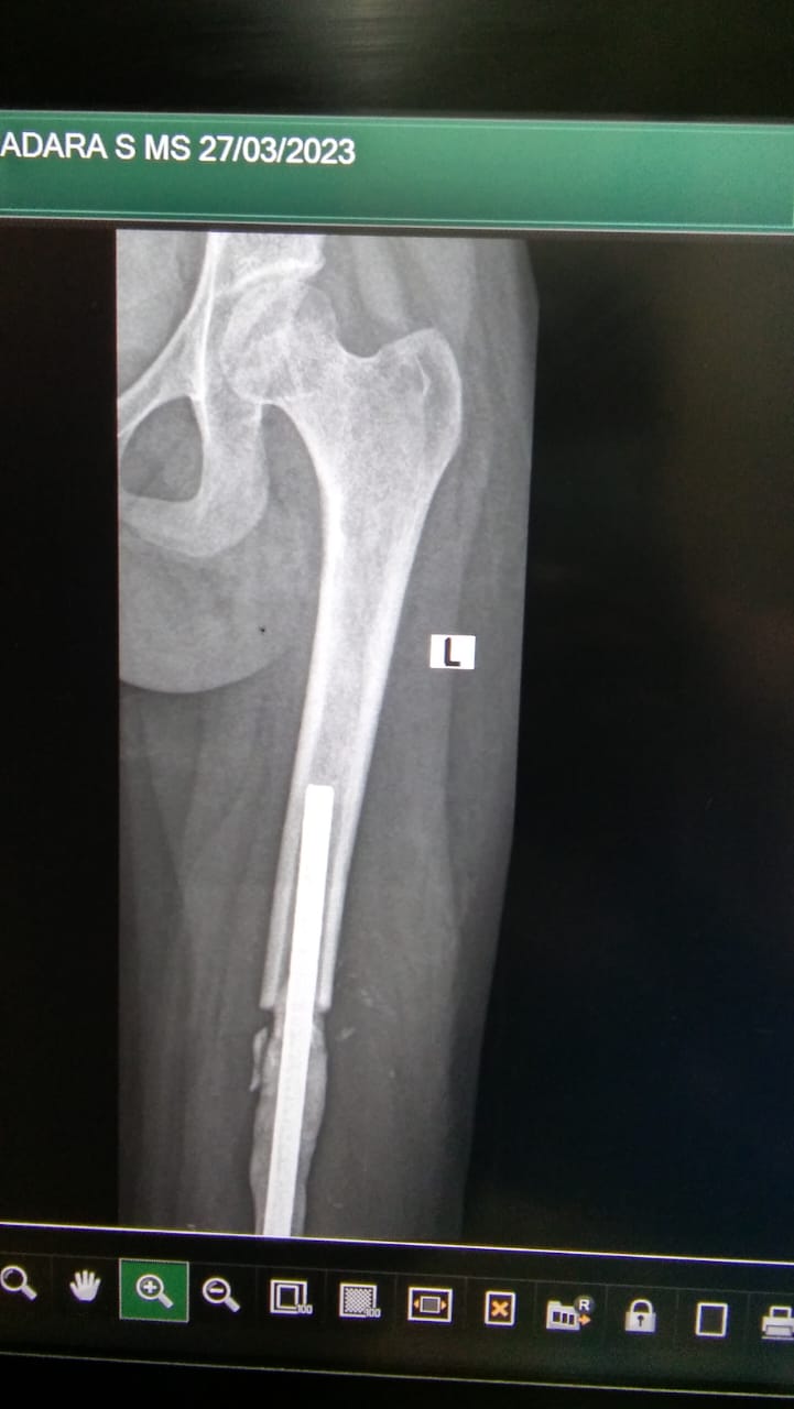 G V S Madara, 19 years old girl, was diagnosed with osteosarcoma (born cancer) of the left distal femur. The surgery of megaprosthesis fixation (artificial joint replacement) was done after the completion of her chemotherapies. The trust contributed towards expenses for his treatment.